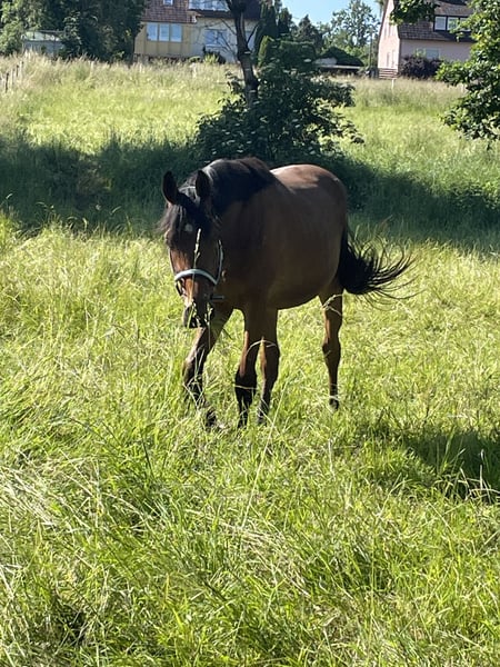 Verkaufe deutsche Sportstute – ideal für den Freizeitbereich oder zur Zucht! 3-jährige Stute als gehobenes Freizeitpferd/Zuchtstute zu verkaufen ( Adzaro de L‘Abbaye x Ludwig von Bayern x Zeus ) HOPE ist eine brave, bildhübsche braune Stute, leider hat sie vorne eine leichte Fehlstellung.Die Fehlstellung macht ihr keine Probleme . Aktuell steht sie noch in der Herde und ist roh. Sie kann aber gerne noch bei uns angeritten werden. Wir wünschen uns für sie ein 5 ⭐️ Zuhause Wegen der Fehlstellung unter Wert abzugeben! Platz vor Preis !!! Bei Interesse oder weiteren Fragen stehe ich Ihnen gerne zur Verfügung. Vereinbaren Sie gerne einen Termin für eine Besichtigung und ein Kennenlernen! 0171 8282493