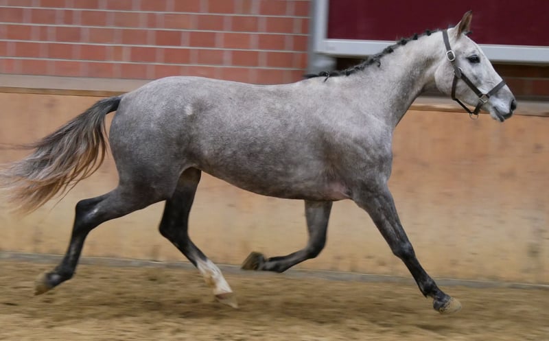 Name: Claudia Age: Born July 7, 2021 Gender: Mare Height: 15.0 hh Breed: German Sport Horse Pedigree: Cayton von Calido x Cascadello I by Casall Training Status: Lunged A double-competent mare with excellent gaits and a fantastic jumping style. For more information, please contact: 0176 62495567