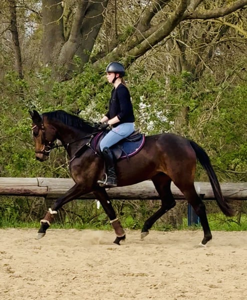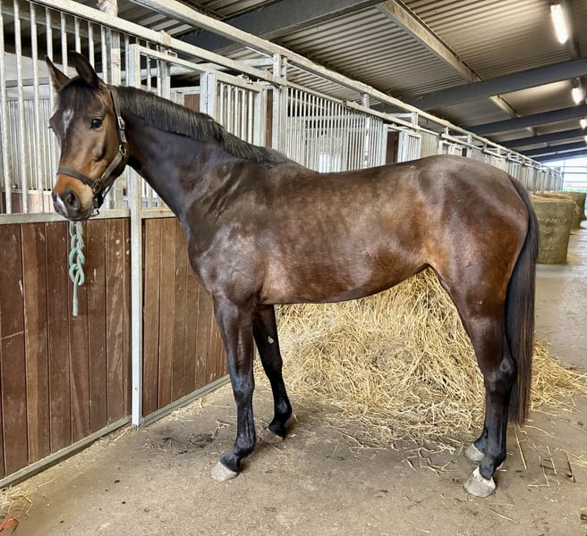 Verkaufe eine vielversprechende elegante Dunkelbraune Stute, geboren im Jahr 2022. Mit einem Stockmaß von 159 cm überzeugt die junge Stute durch ihre aufgeschlossene Art und ihren sehr guten Grundgangarten. Sie ist frisch angeritten, zeigt bereits erste Tendenzen für den Spring- und Dressursport und besitzt das Potenzial, sich zu einer leistungsstarken Partnerin für ambitionierte Reiter zu entwickeln. Die Stute ist gesund, gut erzogen und lässt sich sehr angenehm reiten. Ein echtes Nachwuchstalent für die Zukunft.