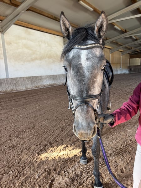 Zum Verkauf steht eine 1,65m große, 4-jährige Deutsche Sportpferd-Stute (2022) aus eigener Zucht. Abstammung: Chubakko x Salito Die Mutter wurde bis S-Springen vorgestellt und ist M** platziert. Die Stute wurde schonend angeritten und altersentsprechend gearbeitet, hat bisher noch nicht viel gesehen und steht am Anfang ihrer Ausbildung. Sie ist auch etwas speziell und sensibel. Im Umgang ist sie brav. Sie kennt Longieren, Laufenlassen, täglichen Stallablauf, Schmied und Verladen. Aufgrund ihres Alters, Temperaments und des notwendigen Zeitaufwands wird sie nur in Hände mit Erfahrung in der Ausbildung junger Pferde abgegeben. Sie ist kein Anfängerpferd. Auch als Zuchtstute interessant durch ihre leistungsgeprüfte Abstammung. Videos gerne unter 015560149005