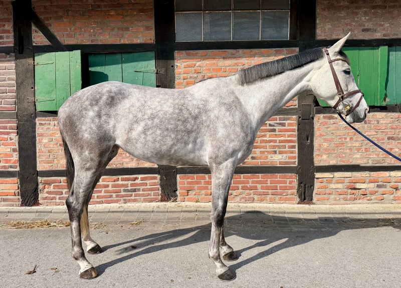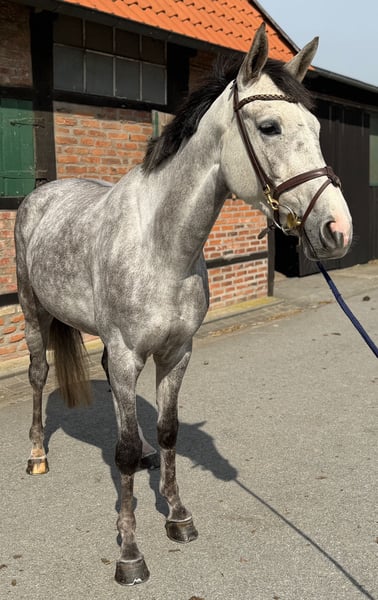 Inquiries only by phone or via WhatsApp at +49 151 53797080. For sale is this 4-year-old mare by Quiwi Capitol out of Liberator. She currently measures 165 cm and demonstrates a lot of quality and caution when free jumping. In handling, she is very well-behaved and uncomplicated, and she has already started her first rides under saddle. She remains completely easy-going during riding as well. Her temperament is very relaxed and straightforward. A current veterinary certificate is available. Videos can be sent upon request. Please note that this is a young horse that has only been ridden for less than two weeks. For the safety of the horse, a trial ride is not possible. Lunging and free jumping are of course no problem.