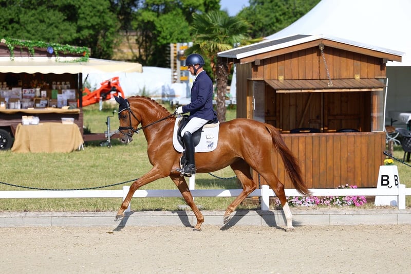 Sole Gold ist eine super rittige Stute, abstammend von Toto Gold. Ihre Mutter, Samba‘s Lady, war selbst Staatsprämienstute und brachte mehrere sporterfolgreiche Nachkommen und Staatsprämienstuten. Somit eignet sich Sole Gold auch bestens für die Zucht. Sie bringt alle Reitpferdepoints mit die ein modernes Sportpferd besitzen sollte. Sole Gold konnte bereits letztes Jahr Erfolge in Reitpferdeprüfungen sammeln. Sie wurde nun altersgemäß weiter ausgebildet, somit steht der Turniersaison 2026 nichts im Weg. Anfragen und Vidoes bitte direkt per WhatsApp oder Telefon an +4915256809321