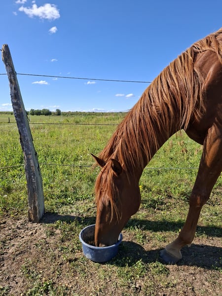 Wij bieden een prachtige en beweeglijke merrie aan van de succesvolle Anglo-Arabische hengst Magistral. Ze meet ongeveer 162 cm in schofthoogte en overtuigt niet alleen door haar exterieur, maar ook door haar indrukwekkende aanleg. De moeder was zowel succesvol in jonge paarden- als in eventingproeven, haar vader was tot de klasse CIC2* geplaatst – een sportief veelbelovende combinatie. De merrie valt op door een expressieve draf, een duidelijke, taktvaste stap en een krachtige, bergopwaarts gesprongen galop – ideale voorwaarden voor een carrière in de sport. Ze is leeftijdsgeschikt opgeleid, kent zadel, hoofdstel, longeren en vrijspringen. Vanwege tijdgebrek is ze tot nu toe nog niet verder opgeleid en zoekt nu een stimulerend thuis met perspectief. Een echt juweeltje voor ambitieuze ruiters!