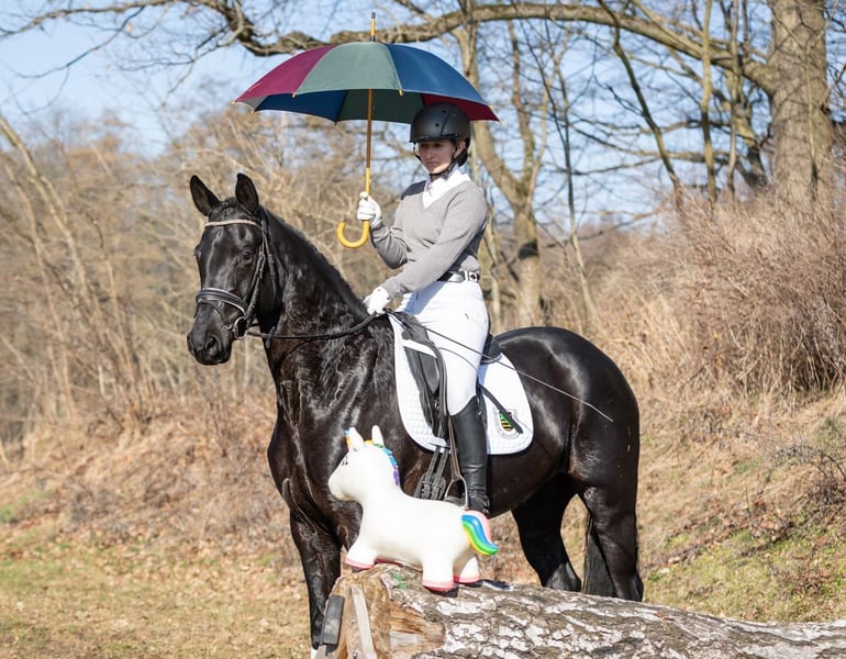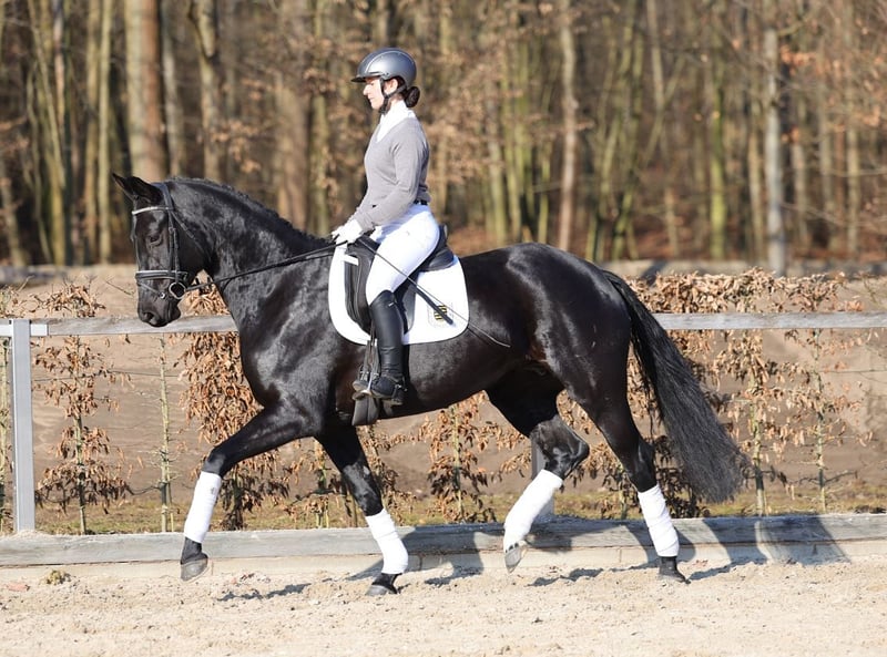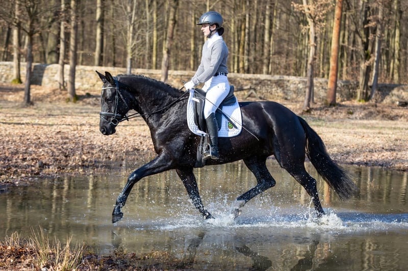 Dieses Pferd ist Bestandteil der 12. Verkaufspferdewoche im Landgestüt Moritzburg vom 11.-19. April 2026 mit abschließender Online-Auktion. Labelle ist bereits in jungen Jahren erfolgsverwöhnt: sie war Reservesiegerin der dressurbetont gezogenen dreijährigen Stuten bei der Elitestutenschau 2024 und mit der Endnote 8,18 hoch platziert bei ihrer Stutenleistungsprüfung im selben Jahr. Sie erhielt gleichmäßig gute Noten für alle Grundgangarten und das Freispringen, wobei ihre Rittigkeit besonders hervorzuheben ist, für die sie ein „sehr gut“ erhielt. 2025 brachte Labelle ein gesundes Hengstfohlen zur Welt, das erfolgreich auf dem Fohlenchampionat startete. Nach der Fohlenpause machte Labelle genau dort weiter, wo sie zuvor aufgehört hatte: mit Freude und sehr guter Rittigkeit ist sie tagtäglich bei der Arbeit und möchte einfach immer alles richtigmachen. Dabei spielt es keine Rolle, ob Dressurviereck, Springparcours oder Gelände auf dem Trainingsprogramm stehen. Labelle verzeiht auch schon mal einen kleinen Reiterfehler und ist nicht zuletzt deshalb ein echtes Herzens- und Charakterpferd.