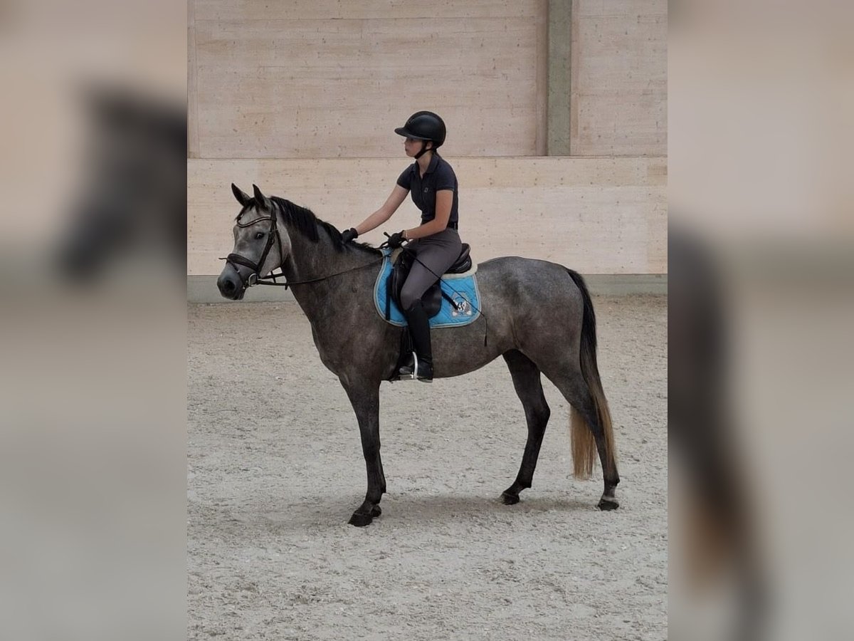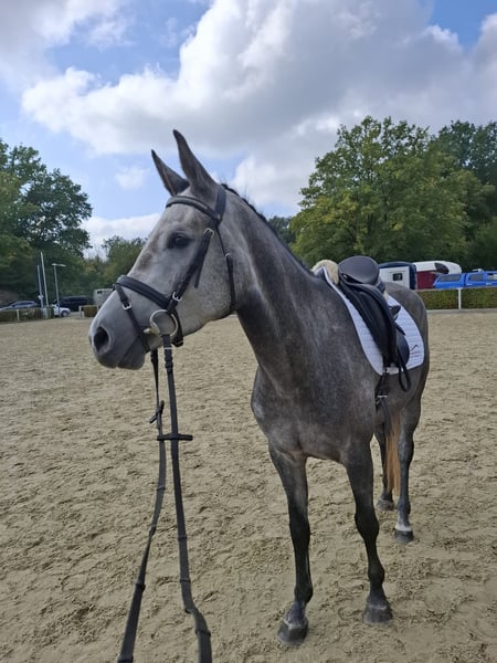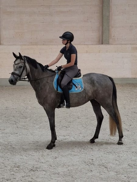 Yegua mare de 5 años, de color gris, con gran talento y excelentes habilidades para el salto.