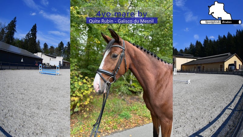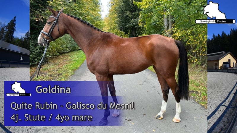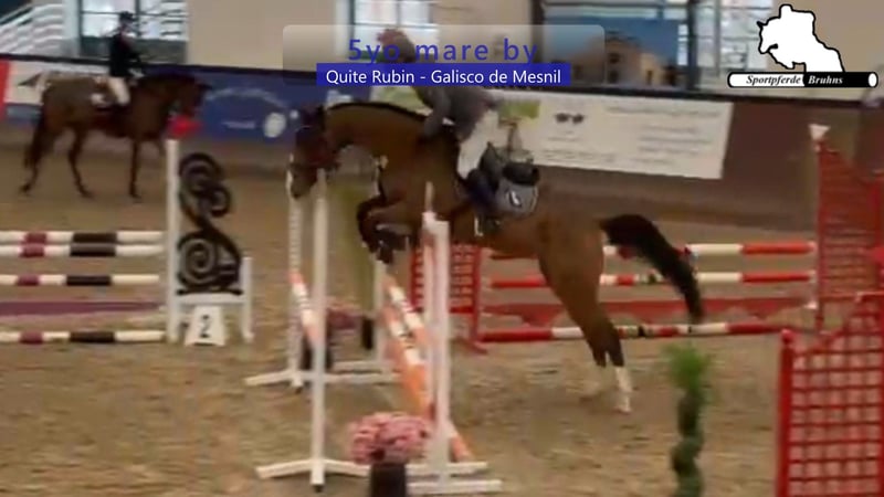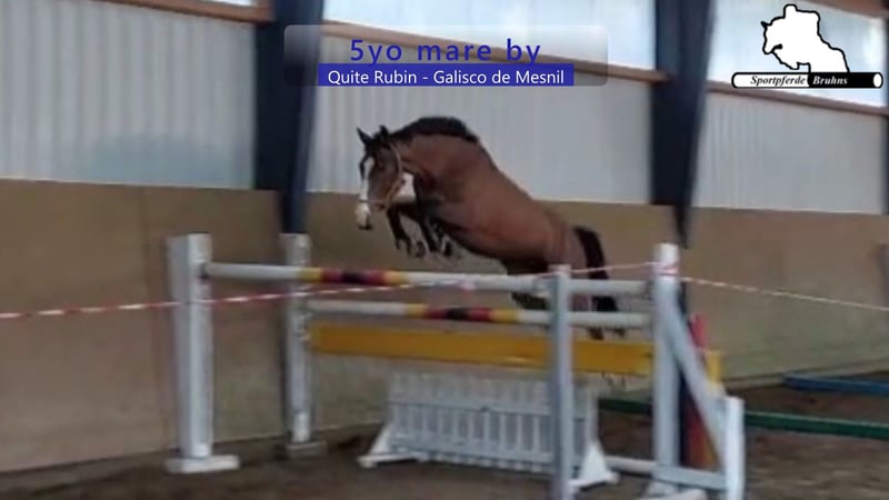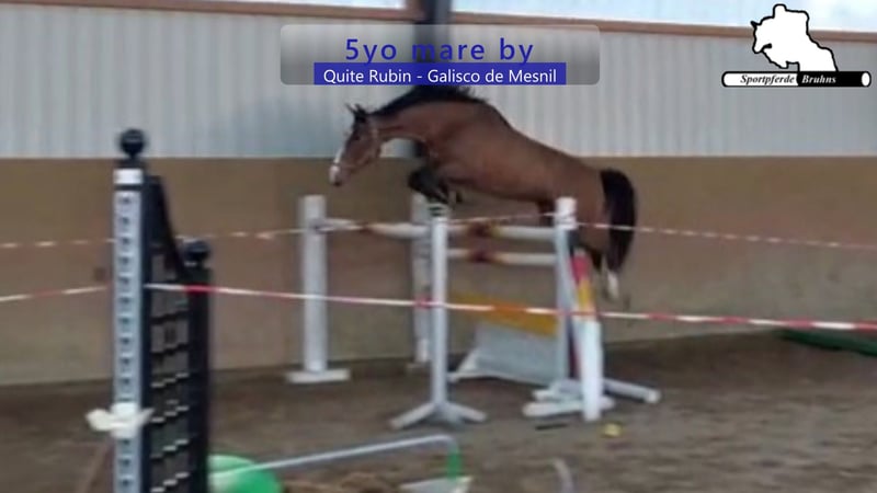 Wir bieten hier eine 5jährige Stute mit Potenzial, die bereits auf ihren ersten Turnierauftritten platziert war. Mit ausreichend Blut und charakterstark zeigt sie sich in der Arbeit. Am Sprung präsentiert sie sich mit viel Abdruck, leichtfüßig und sehr vorsichtig bei gutem Springvermögen. Genetisch ist sie ebenfalls interessant, da sie aus einem absolutem Leistungsstamm gezogen wurde bei leistungsorientierter springbetonter Abstammung.