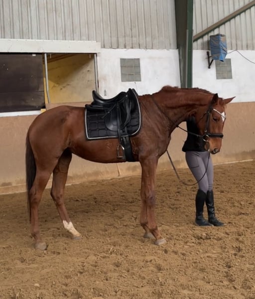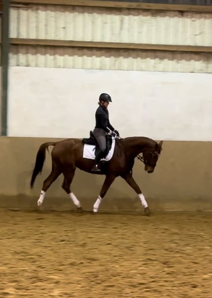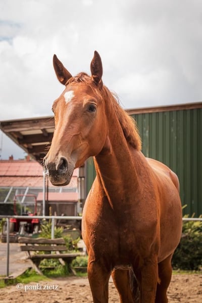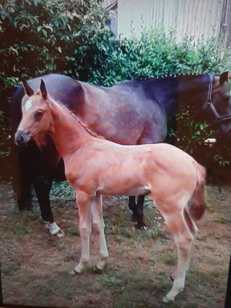Verkaufe deutsche Sportstute – ideal für Dressur! Von Fohlen an bei mir. Letztes Bild zeigt Mutter, Stute und Verkaufspferd. Zum Verkauf steht eine elegante und talentierte deutsche Sportstute, geboren im Jahr 2021. Die Fuchsstute besticht durch ihr ansprechendes Erscheinungsbild und ihre hervorragenden Bewegungen. Mit einem aktuellen Stockmaß von 167 cm bietet sie die perfekte Größe für ambitionierte Reiterinnen. Aufgrund ihrer feinen Statur ehr ein Damenreitpferd (Reiterin im Bild1,66m groß) Sie ist bestens im Dressursport ausgebildet und zeigt bereits vielversprechende Ansätze für die Zukunft. Die Stute ist gesund, gut gepflegt und besitzt eine freundliche, lernbereite Natur. Bei Interesse stehe ich gerne für weitere Informationen und einen Besichtigungstermin zur Verfügung. Aufgrund des sonst anstehenden Reittourismus, wird pro probereiten 50€ Gebühr bezogen, die beim Verkauf natürlich verrechnet werden!