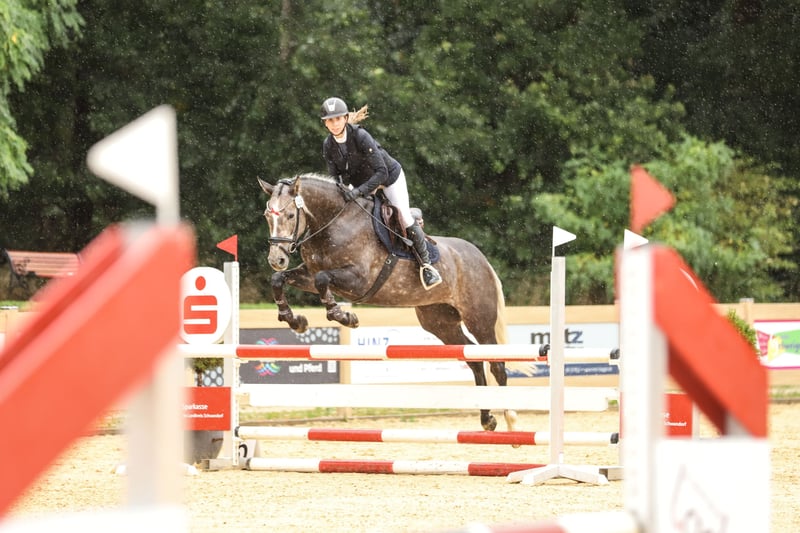 Diese traumhaft schicke Stute überzeugt nicht nur durch Ihre Optik sondern auch durch ihre 3 tollen Grundgangarten, ihre coolness am Sprung mit dennoch viel Vermögen und auch ihre Unerschrockenheit im Gelände. Sie ist seit Fohlen an bei uns und seit einem guten Jahr unter dem Sattel und lief vor kurzem ihre erste Dressurpferde A die sie mit einer guten 7,5 beendete. Auch im Springen macht sie tolle Fortschritte und lief ihre erste Springpferde A welche sie super kopfklar mit (2 doofen Reiterfehlern) beendet hat. Daher hat sie uns aber auch bewiesen das sie auch wenn’s mal unpassend wird trotzdem immer über den Sprung möchte und daher super Amateurtauglich ist. Ein Pferd zum sofort losreiten für A und L. Die ersten Geländehindernisse hat sie auch bereits mit Bravour gemeistert und zeigt viel Freunde dabei. Auch ihre rittige Art macht das ganze nochmal einfacher. Im Umgang ist sie ein richtiger Schatz. Egal ob Hufschmied, Verladen oder der Umgang mit anderen Pferden. Weitere Infos sowie Videos gerne unter 0160 1662003.
