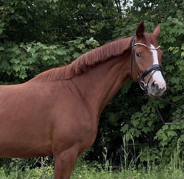 Wir verkaufen unsere außergewöhnlich typvolle und ausdrucksstarke 4-jährige Fuchsstute „Wendy“ mit einem Stockmaß von ca. 1,69 m. Diese beeindruckende Nachwuchsstute überzeugt durch ihre elegante Erscheinung im Hengsttyp sowie durch ihre herausragende Bewegungsqualität mit einer wundervollen Bergauftendenz und einer besonders modernen und beeindruckenden Vorderbeinmechanik. Wendy präsentiert sich stets hochmotiviert, sehr lernwillig, fleißig und konzentriert bei der Arbeit. Besonders hervorzuheben ist ihr positiver und aufmerksamer Charakter – sie zeigt sich interessiert, lernwillig und dem Menschen zugewandt, was sie zu einer absoluten Freude im täglichen Umgang macht. Unter dem Sattel zeigt sie sich mit hervorragender Rittigkeit und gibt dem Reiter ein stets angenehmes, feines Gefühl in der Hand. Sie lässt sich leicht und selbstverständlich durchs Genick reiten und überzeugt mit einer sehr konstanten Anlehnung. Zudem ist sie ausgesprochen sitzbequem und trägt den Reiter mit viel Balance und Körpergefühl, was ein besonders harmonisches Reitgefühl ermöglicht. Aktuell befindet sich Wendy auf einem soliden Dressurpferde-A-Niveau. Gute Röntgenbilder inklusive Rücken.