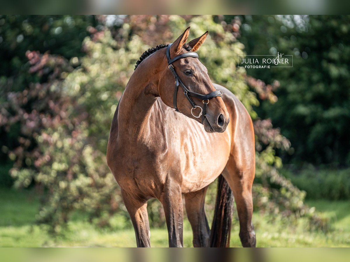 For sale is a well-behaved 4-year-old mare from a dam line with a lot of bloodlines. She has been kept in a species-appropriate manner with plenty of turnout (in winter, daily paddock time of at least 10-12 hours, and in the summer months, 24-hour pasture access) and has been handled daily. The sire, El Salvador, a state stallion at the Moritzburg State Stud, is a competition-successful descendant of Escolar and Sandro Hit. He is paired with a dam line that has Thoroughbred connections. This beautiful and spirited mare would certainly also be suitable for eventing. The mare is currently lunged and is familiar with a rider's weight at the walk.