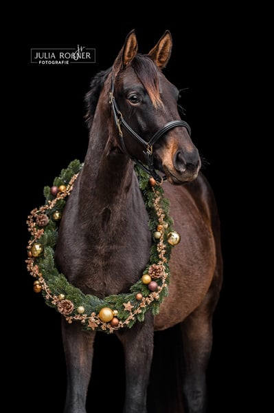 Se vende una yegua de 4 años, bien educada, proveniente de una línea materna con mucha sangre. Ha sido criada de manera adecuada con mucho espacio (en invierno, se le permite salir al paddock diariamente al menos 10-12 horas y en los meses de verano, se mantiene en pasto 24 horas) y ha sido manejada a mano diariamente. El padre, El Salvador, semental del Estado en el criadero de Moritzburg, es un descendiente exitoso en competiciones de Escolar y Sandro Hit. Se ha cruzado con una línea de yeguas con conexión de pura sangre. Un caballo de deporte exitoso de esta línea es el DSP Sheldon Cooper (de Sezuan). Es una yegua hermosa y temperamental, que sin duda también sería adecuada para la disciplina de concurso completo. Actualmente, la yegua está siendo lungada y conoce el peso del jinete al paso. Se han realizado radiografías.