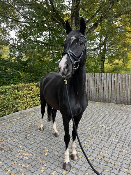 **Verkaufsanzeige: Deutsches Sportpferd** Im Auftrag des Züchters zum Verkauf steht eine bild hübsche, unverbrauchte 6 jährige Stute. Sie wurde im letzten Winter schonend angeritten und durfte den Sommer aus Kapazitätsgründen nochmal auf der Weide verbringen, seit Anfang Oktober ist sie nun wieder unter dem Sattel (Video vom 2. Mal reiten). Diese Stute eignet sich bei weiterer Förderung hervorragend für den gehobenen Freizeit Bereich oder den Dressursport und zeigt bereits vielversprechende Ansätze. Sie ist sehr sensibel, brav im Umgang und hat ein angenehmes Wesen, das sie zu einer idealen Partnerin für ambitionierte Reiter macht. Der Preis steigt bei weiterer Ausbildung Bei Interesse oder weiteren Fragen stehe ich Ihnen gerne zur Verfügung. Besichtigungen und Probereiten sind nach Absprache möglich.