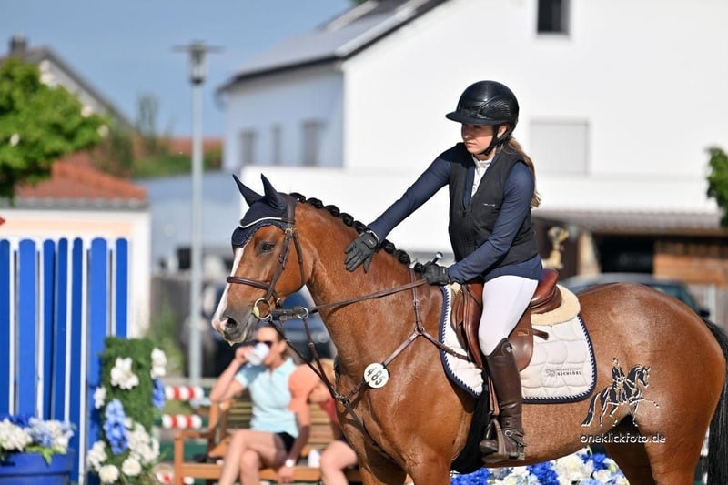 Magnifique jument de 5 ans – douce, proche de l’homme et déjà gagnante en saut d’obstacles L À vendre, une jument très charmante et facile à vivre, qui séduit non seulement par son tempérament adorable, mais aussi par ses performances sportives remarquables. Elle est extrêmement douce, très proche de l’homme et se montre totalement facile et lucide dans son comportement quotidien. Qu’il s’agisse de la brosser, de la ferrer ou de la charger, elle coopère toujours avec patience et constitue un véritable plaisir au quotidien. Sous la selle, elle est montable, prête à donner le meilleur d’elle-même et toujours concentrée. Lors du saut, elle affiche une excellente attitude, beaucoup de clairvoyance et suffisamment de potentiel pour évoluer vers des niveaux supérieurs. Elle a déjà remporté des classes de saut d’obstacles L et se dirige sans problème vers le niveau M, où elle pourra également s’y distinguer. Une magnifique jeune jument pour cavaliers ambitieux, à la recherche d’un cheval fiable, motivé et doté d’un grand talent sportif. Pour toute question ou intérêt, n’hésitez pas à me contacter.