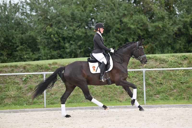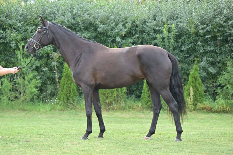 Hier geht's zur Kollektion und Online-Registrierung: https://auktion.pzvbw.de/auctions MwSt. 0 % Diese volljährige Staatsprämienstute ist sowohl züchterisch als auch reiterlich eine hochinteressante Offerte. Ihre Mutter, aus der berühmten P-Familie, brachte die beiden Prämienhengste Bloomingdale und DSP Don Royal. Ihre Stutenleistungsprüfung absolvierte sie mit einer Dressurnote von 8,03. Auch auf einer Reitjagd sammelte sie bereits Erfahrungen. This state premium mare is a highly interesting prospect for breeding and riding. Her dam, from the famous P family, produced the two premium stallions Bloomingdale and DSP Don Royal. She completed her mare performance test with a dressage score of 8.03. She has also already gained experience in the hunting field.