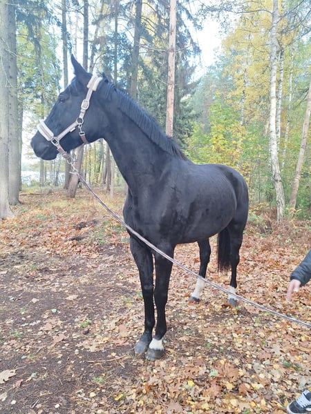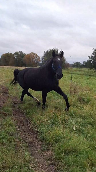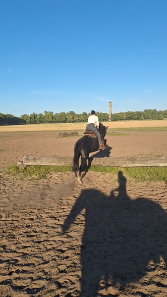 "DEUTSCHES SPORTPFERD" eine wunderschöne 5 jährige Rappstute mit einen Stockmaß von ca. 170cm. Diese Stute besticht nicht nur durch ihre Erscheinung, sondern auch durch ihr ausgeglichenes Wesen und ihre vielseitige Verlanlagung. Sie ist freizeitmäßig geritten und zeigt dich dabei stets brav und unkompliziert. Ob im Gelände , auf den Platz oder an der Longe Sie geht zuverlässig Schritt/Trab/Galopp. Gelassenheit: Sie ist wenig schreckhaft bis gar nicht und zeigt sich gegenüber neuen Situationen eher ruhiger. Aufgrund ihres Alters ist sie noch in der Entwicklung und braucht eine klare Konsequente Führung. Sie hinterfragt ab und zu Dinge ist dabei aber nicht böse, sondern einfach ihren jungen Alter entsprechend noch etwas unerfahren. Mit der richtigen bezugsperson, die Ihr Sicherheit und Struktur gibt, entwickelt sie sich zu einen tollen Partner. In der Herde ist sie eher Rang mittel/bis hoch. Abstammungstechnisch bringt sie interessante Veranlagung mit: mütterlicherseits dressurbetont, väterlicherseits aus den gehobenen spromgsport gezogen. Leider ist sie nicht eingetragen. Würde aber mit weiterer Ausbildung ein nettes Bild auf Turnier geben. Sie hat bisher noch nicht gestoppt vorm Sprung oder wassergraben. Kinder sind bereits auf ihr geritten wo sie sehr brav und Freundlich war. Dennoch wird sie nicht als reines kinderpony verkauft. Gesundheitlich ist zu erwähnen das sie eine leichte high-low Stellung vorne hat was man mit Beschlag gut korrigieren kann. Bei Interesse gerne per WhatsApp unter 0176 13478979 melden