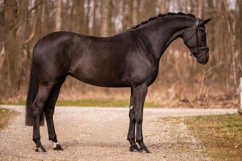 Liebe Interessenten, Ausführliche Videos versende ich gerne auf Anfrage per WhatsApp 00491713438949 Für Terminvereinbarungen Probereiten senden Sie mir bitte eine WhatsApp. Für weitere Fragen bin ich tagsüber per WhatsApp erreichbar, telefonisch erreichen Sie mich am Besten zwischen 16 und 19 Uhr. Ich freue mich auf eine Kontaktaufnahme www.angelina-devittorio.de ⭐️ Amore Musica ⭐️ • Alter: 6 Jahre (2020) • Größe: ca. 1,71 m Abstammung: Don Nobless x San Remo • Ausbildungsstand: Dressurpferde A hochplatziert • AKU: gute alte Röntgenbilder vorhanden Zum Verkauf steht eine atemberaubend schöne Rappstute mit hervorragender Qualität, Rittigkeit und bestem Charakter. Diese außergewöhnliche Stute konnte bereits mit einem tollen Fohlen überzeugen und wurde dafür mit der Staatsprämie ausgezeichnet. Vor ihrem erfolgreichen Zuchteinsatz war sie bereits im Turniersport aktiv und in Dressurpferde A hoch platziert, Aktuell ist sie sicher Dressurpferde A fertig und L Lektionen sind spielerisch begonnen . Absolut amateurtauglich aufgrund ihres tollen Charakters . Wunderschön, liebenswert und mit einem ganz feinen, ausgeglichenen Wesen ausgestattet, bereitet diese Stute täglich große Freude im Umgang und unter dem Sattel. Sie verfügt über eine außergewöhnlich gute Trabmechanik mit viel Grundschwung und einem aktiven Hinterbein, einen sehr guten, taktsicheren und geregelten Schritt sowie eine sehr gute, praktische Galoppade. Eine besondere Stute für Zucht und Sport – ein echtes Herzenspferd. ⚜️Tel: 0171-3438949 ⚜️a.devittorio@web.de ⚜️https://www.ehorses.de/angelinadevittorio Facebook und Instagram Angelina De Vittorio Videos bitte per WhatsApp 00491713438949