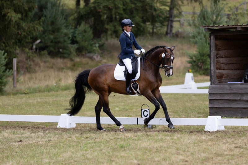 7 jährige, bildhübsche Stute von Denver x Heraldik xx. Ein Vielseitigkeitspferd mit genug Potenzial für 3/4* und toller Springmanier! 7x VA/CCI1* Intro gegangen, 7x platziert. Geländepferde L Noten bis zu 9,3, Geländepferde A 9,2, Stilgeländeritte bis 8,8. A/L Springen mehrfach siegreich, letztes Jahr nie unter der Note 8 (14/16 fehlerfreie Runden). Einmal M Springen vorgestellt. Dressurpferde L platziert, bewegt sich sehr schön, taktsicherer und raumgreifender Schritt. Amateurgeeignet, leicht zu reiten, mit gutem Zug zum Sprung. Im Umgang sehr artig, brav beim ausreiten, alleine und in der Gruppe, wird nicht heiß oder stark im Gelände. Daher kann ich sie mir auch für einen Jugendlichen vorstellen, der mit ihr Richtung DJM möchte. Sie war immer gesund und wurde 2024 komplett getüvt. Da ich im Sommer ins Referendariat starte, muss ich mich leider von Daffy trennen. Kontakt bitte an: 01749515885