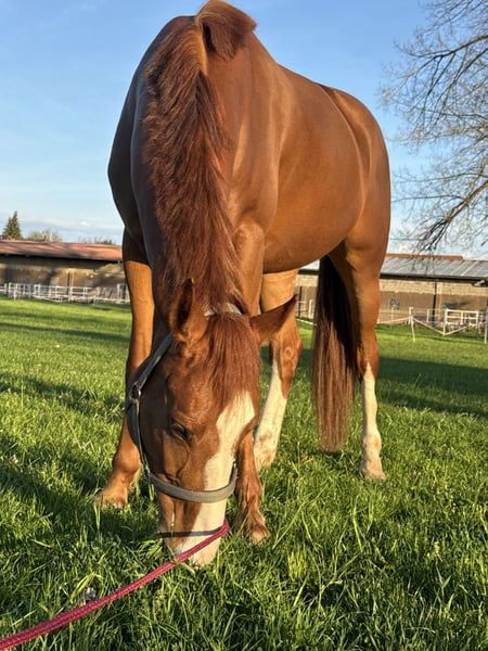 ATTENTION: The price of €9,290 is only valid until December 31st. Starting January 1, 2026, the purchase price for Henrietta will increase. I hereby wish our mare a wonderful new home. She is trained almost daily by a professional trainer, including groundwork, longeing, and jumping training. She is contractually kept with other horses and tends to be lower in the herd hierarchy. She loves jumping and initiates the jump herself with a clear GO, no evading or sudden braking. Henrietta has no vices, no bucking, no rearing, and no biting. Born in May 2019 Height: 16.1 hh She is not an absolute beginner’s horse; you should be able to ride at least at level E. She has an LPO registration. Her breeding indicates good jumping ability. She enjoys trail rides, as shown in the video, and behaves well during outings. Henrietta is a native-bred (Barhuf) mare and does not require shoes, which saves costs. Currently, she is trained up to five times a week by my trainer. She is regularly attended to by the blacksmith. She is forge- and trailer-trained, loads easily, with consistent training. A fantastic leisure horse, perfect for riding out. She has a special pedigree: Hickstead White x Periqueux/Wonderland. Videos available upon request after an initial phone call. Further details will be discussed personally. Price negotiations are only possible on-site. According to the new EU law, the following clause applies: The sale is made under exclusion of any warranty for material defects. “I exclude any liability for material defects; all information is provided without guarantee. Liability for damages resulting from injury to health, body, or life, as well as grossly negligent or intentional breaches of my duties as the seller, remains unaffected.” In accordance with the new EU regulations, the following conditions apply: This sale is a private sale from private to private under § 13 BGB. The sale is made without warranty, guarantee, or return. According to § 447 BGB, risk passes to the buyer or the shipping carrier upon handover. This clause must be included under every online sale according to EU law; otherwise, the seller is liable for the sold goods for one year.