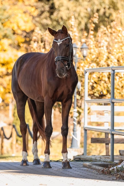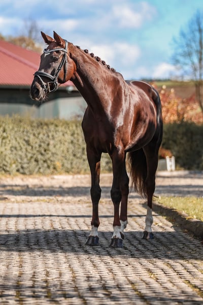Beautiful dark chestnut mare as an excellent leisure partner. This lovely mare impresses with her appealing gaits and her affectionate nature. She is a pleasure to ride and has completed her training up to A-level. She is also a great partner in the terrain. She is ideal as a leisure horse to love and bring joy! Feel free to visit our Instagram page for more insights into daily life with Diamond Sparkle, including stories, posts, reels, and highlights. @unicornhorsesofficial For inquiries, please contact us by phone at: +49 (0) 176 20174499