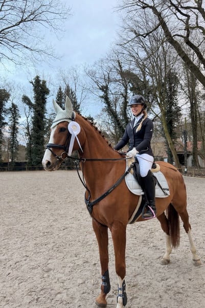 Reliable and well-behaved all-round horse For sale is a 7-year-old mare by Casskeni II out of Quaterman I. She stands approximately 1.74 m (around 16.1 hh) and has been trained in both dressage and show jumping. She is versatile and handles both disciplines well, with potential for further development. Currently competing at A-level in dressage and jumping. Cassy is calm, reliable, and easy to ride, making her an excellent choice for riders looking to progress or switch disciplines. Rides well alone and in groups in the terrain Halter- and load-trainable Healthy, no health issues Placed in show jumping competitions A recent comprehensive health exam from September is available. She is a true dependable partner! Serious inquiries are welcome via message.