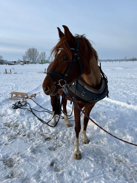 Wenn alles passt, suche ich für meine 8Jährige Stute, 155cm, kein Gewichtsträger, ein neues zu Hause. Leider bringt sie gesundheitliche Handicaps mit, wenn diese gut gemanaget sind hat man hier eine nette Partnerin für das Gelände oder auch geführte Therapie. Eingeschränkt ist sie durch leichtes Asthma, dass mit der richtigen Fütterung und Bewegung gut im Griff zu halten ist. In akuten Phasen sollte man dennoch Medikamentös unterstützen. Mit 2,5Jahren hatte sie Medikamenten Rehe, daher lasse ich sie behutsam Angrasen. Ein Test auf Insulinresitenz wurde zu der Zeit gemacht, dieser war negativ. Sie neigt zu Verstopfungskoliken, daher ist eine reine Boxenhaltung nicht ratsam. Seit der Umstellung in eine kleine Offenstallgruppe hat sie damit keine Probleme mehr. Zur Zeit lebt sie mit meinen beiden anderen Pferden im Offenstall, es wird seit neustem Heulage gefüttert, im Spätensommer lasse ich den Zugang zur Koppel 24/7 offen und das funktioniert gut. Vicky hatte leider einen Unfall und hatte die Schulter verletzt dies ist operiert worden und ausgeheilt. Daher ist sie aber nicht mehr für den Sport tauglich. Sie steigt und bockt nicht, blockiert dennoch hin und wieder. Wenn man mit ihr umzugehen weiß und alles gut eingestellt ist, hat man hier ein Pferd mit dem man viel Spaß haben kann. Ich reite sie alleine oder in der Gruppe ins Gelände. Reite auf dem Platz und in der Halle, kleine Kreuze springe ich auch hin und wieder, fahre mit ihr zum Ausreiten weg oder auch zu Trainings. Meine 15Jährige Reitbeteiligung ist mit ihr im Gelände unterwegs. Ich möchte so transparent wie möglich sein, das Pferd liegt mir sehr am Herzen. Und erwarte dies auch von den Interressenten. Es gilt Platz vor Preis Bei Interesse gerne telefonisch oder per WhatsApp melden. 01718234755