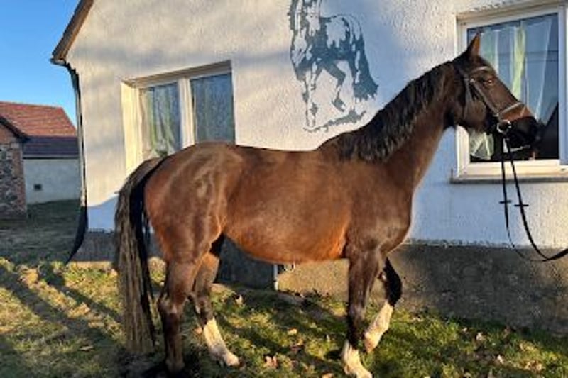 Verkauft wird hier eine dunkelbraune Stute die letztes mal 2024 bis M Springen geritten wurde. Durch ihre kompakte Größe sehr wendig und schnell. 2025 hat sie sich in der Box beim Sielen am Bein verletzt, ist nun ausgeheilt. Gelahmt hat sie während der ganzen Zeit nie!! Es ist jedoch eine Galle geblieben. Darum auch weit unter Wert zu verkaufen. Wurde bisher nur longiert, ich bin auf Grund meines Alters nicht mehr in der Lage. Sie ist auch für die Zucht sehr interessant, da über Contender gezogen. jetzt ist der Zeitpunkt wieder durchzustarten. Bei Rimondo sind Videos vorhanden.