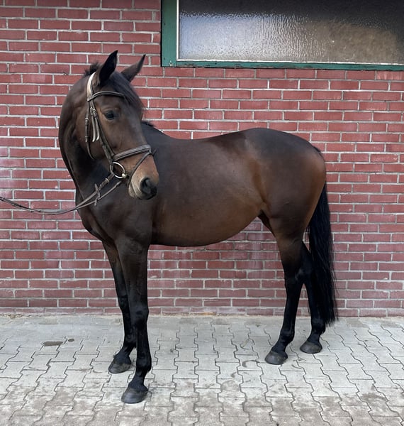 Eight-year-old dark bay mare with potential seeking a supportive home For sale is an 8-year-old dark bay mare with good basic gaits and lots of engagement. She is motivated under saddle, shows no vices such as rearing or bucking, and is herd-friendly. She enjoys hacking out and jumping, bringing great pleasure in both disciplines. She is well-behaved at the blacksmith's. She particularly demonstrates strong ambition when jumping, makes excellent efforts over fences, and remains completely fearless. Due to her temperament and versatility, I can also very well imagine her as a eventing horse. She is not a beginner's horse, as she occasionally requires a clear, consistent approach. For personal reasons, she has been worked well below her potential and has had several breaks—not due to injury, but for human reasons. The mare is in top condition and healthy; TÜV including back assessment available. A prompt sale is preferred. For uncomplicated, quick sale, there is room for negotiation. I wish for a loving home where she can be further supported and worked according to her potential. Approximate height: 16.1 hh; for orientation, the rider is about 17.8 hh. The mare had a break over the winter and we are now resuming training. To avoid riding tourism, a fee of €20 applies for a trial ride. Please note, this is a sales listing. No leasing or gifting due to special circumstances. I kindly ask to refrain from such inquiries. Thank you very much! €7,900 if collected by the end of February. Otherwise, €9,900 negotiable.