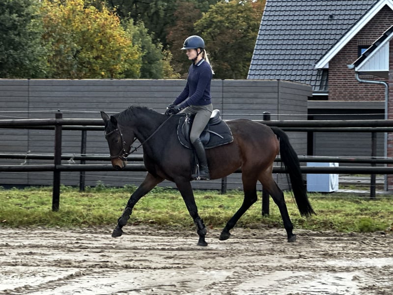 Achtjährige dunkelbraune Stute mit Potenzial sucht förderndes Zuhause Zum Verkauf steht eine 8-jährige, dunkelbraune Stute mit guten Grundgangarten und viel Engagement. Sie ist beim Reiten motiviert, zeigt keine Unarten wie Steigen oder Bocken und ist herdenverträglich. Beim Ausreiten sowie am Sprung macht sie große Freude. Beim Schmied ist sie brav. Besonders beim Springen zeigt sie sich sehr ehrgeizig, macht einen wirklich guten Sprung und ist dabei absolut unerschrocken. Aufgrund ihres Charakters und ihrer Vielseitigkeit kann ich sie mir auch sehr gut als Vielseitigkeitspferd vorstellen. Sie ist kein reines Anfängerpferd, da sie gelegentlich eine klare, konsequente Linie benötigt. Aufgrund persönlicher Gründe wurde sie bisher deutlich unter ihrem Potenzial gearbeitet und hatte mehrere Pausen – nicht verletzungsbedingt, sondern aus menschlichen Gründen. Die Stute ist topfit und gesund, TÜV inkl. Rücken liegt vor. Ein zeitnaher Verkauf wird bevorzugt. Bei unkomplizierten schnellen Verkauf besteht ein größer Verhandlungsspielraum. Ich wünsche mir ein liebevolles Zuhause, in dem sie weiter gefördert und ihrem Potenzial entsprechend gearbeitet wird. Größe ca 168, zur Orientierung die Reiterin ist ca 178 Die Stute hatte über den Winter nochmal Pause und nun starten wir wieder mit der Arbeit. Um Reittourismus zu vermeiden fällt 20€ für ein Probereiten an. Nochmal ein Hinweis, es handelt sich um eine Verkaufsanzeige. Kein zur Verfügung stellen und kein verschenken aufgrund besonderer Umstände. Ich würde mich sehr freuen wenn von solchen Anfragen abgesehen wird. Vielen Dank! 7900€ wenn sie bis Ende Februar abgeholt wird. Ansonsten 9900€ vb