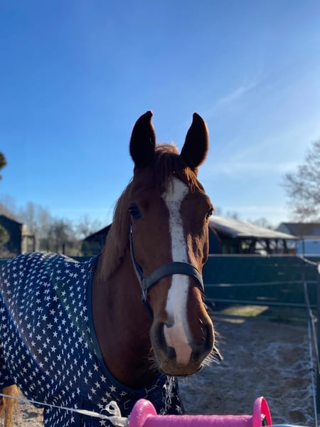 Lamentablemente, nuestra prometedora potranca "Batica", nacida en 01/2021, sufrió un accidente en el paddock que le lesionó el tendón, por lo que no puede ser montada. La lesión ya está curada, pero consideramos que el riesgo de longearla es demasiado alto. Debido a su excepcional linaje, VV Comme il faut / MV Baloubrie, hemos decidido criar un potrillo de ella, nacido en mayo de 2023. Por ello, también se ofrece como yegua de cría. En caso contrario, se ofrece como yegua de compañía. Para interés serio, llamar al +49 172 7967019.