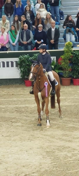 Maybe, born 2017 daughter of Manchester van't Paradijs, from a renowned lineage, placed up to 155, Maybe up to 130 cm with international show experience and placed, promising performances, very well-behaved at shows and very motivated, She was carefully trained with a lot of time and calmness, which is also reflected in her character! Due to her pedigree she has a strong foundation for further success in show jumping. VB