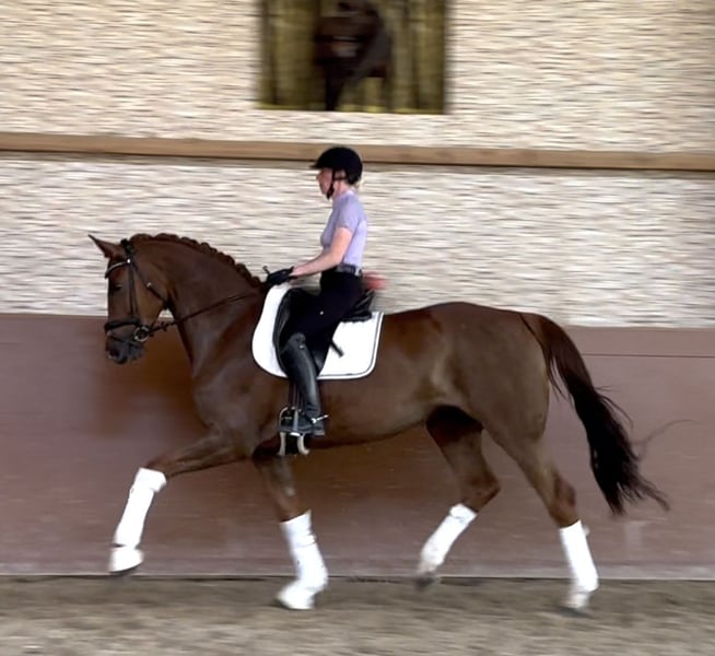 Dear interested parties, For appointment arrangements for trial rides, please send me a WhatsApp message. For further questions, I am available via WhatsApp during the day, and you can reach me by phone best between 4 PM and 7 PM. I look forward to hearing from you. ⚜️Tilly⚜️ Age: 7 years (2018) Height: approx. 1.71 m Pedigree: Thiago x San Amour Training level: Placed in Dressage A, ready for L X-rays: Good older X-ray images available LOCATION: Hayingen, BaWü A stunning stallion-type granddaughter of Totilas with the best willingness to perform and equipped with 3 top basic gaits. She also possesses enormous expression and always wants to please. With her impressive and incredibly beautiful appearance, she attracts all eyes! Placed in Dressage A, ready for L. She is absolutely suitable for amateurs, very clear-headed and well-behaved; however, she is not a beginner's horse, as riding skills at L level are a prerequisite. A highly talented dressage horse that always wants to do everything right. She is very uncomplicated to ride, comfortable to sit on, and light in the contact. Only in the very best, experienced, and supportive hands. Directly from the breeder. She is herd-compatible and also behaves well in the countryside. Good X-ray images available. ⚜️Tel: 0171-3438949 ⚜️a.devittorio@web.de ⚜️https://www.ehorses.de/angelinadevittorio Facebook and Instagram Angelina De Vittorio