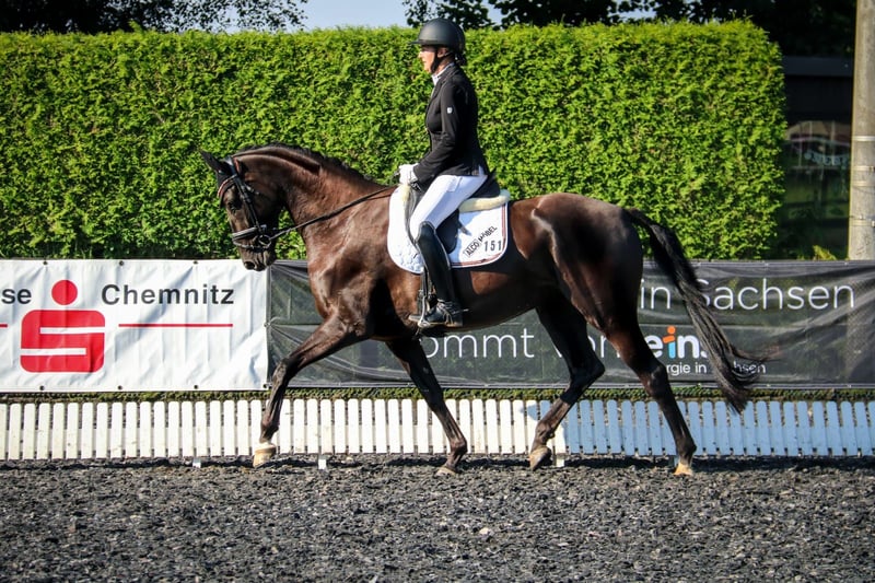 Verkaufe deutsche Sportstute – Top-Zuchtqualität! Zum Verkauf steht eine elegante deutsche Sportstute, geboren im Jahr 2017. Diese wunderschöne Rappstute beeindruckt durch ihr Stockmaß von 172 cm und ihre beeindruckende Erscheinung. Sie stammt aus einer renommierten Zucht und bringt somit beste Voraussetzungen für die Zucht mit. Sie ist gut ausgebildet, war bis zur Klasse A erfolgreich auf Turnier und ist dann in die Zucht gegangen! Sie hat ein freundliches Wesen, ist herdenverträglich und schmiede-und verladefromm! Wegen Nachzucht gebe ich Sie ab und suche einen Lebensplatz! Derzeit steht Sie im Hauptgestüt Graditz, wo Sie auch zum Züchten weiter stehen bleiben könnte, falls Interesse besteht! Dort wird ein Vollservice angeboten, inkl. Aufzuchtsmöglichkeiten zu moderaten Preisen! Reiterlich müsste Sie neu angeschoben werden, da Sie in diesem Jahr ein Fohlen hatte über 1 Jahr nicht mehr geritten wurde. Bei Interesse stehe ich gerne für weitere Informationen und eine Besichtigung zur Verfügung. Kontaktieren Sie mich gern, falls Fragen bestehen!