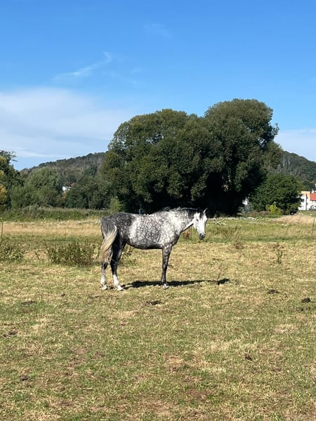 What Else?! This tall, modern mare impresses with her talent, composure, and a wonderful character. She has been previously handled by amateurs. "Else" has competed up to 1.15 m and placed in competitions at 1.05 m – always honest and eager to perform. Under saddle, she is consistently well-behaved, motivated, and easy to control. She provides her rider with confidence and works reliably both in the jumping arena and in the dressage ring. She is also straightforward in daily handling and suitable for beginners who simply want to enjoy riding in the field. 🔹 Born in 2018 | approx. 17.5 hh | Mare 🔹 Quiz x Lahnstein 🔹 Ready for L-level show jumping competitions 🔹 Solidly trained in A-level dressage 🔹 Suitable for children 🔹 Barefoot 🔹 Handled by an amateur 🔹 Has already foaled once 🔹 Healthy and without known limitations A fantastic sport horse for ambitious amateurs or riders looking to upgrade, ready to be used and further developed immediately. 📍 Location: Leipzig 💰 Price: €15,000 – €20,000 negotiable 🧰 Accessories can be purchased additionally for an extra fee