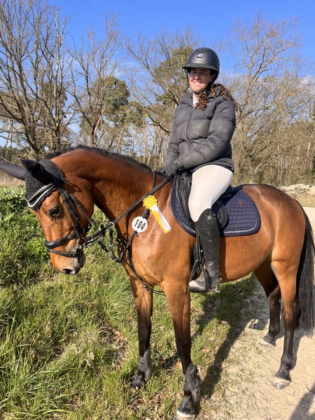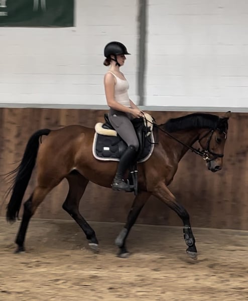 For sale is a high-quality, exceptionally brave 2017-born sport mare with talent and potential for show jumping. The mare is trained up to novice level in dressage and has competition experience. She is very well-behaved and uncomplicated during shows. Her special talent lies in jumping: equipped with plenty of scope and caution, she has already competed successfully in A-level show jumping classes and has placed. Pedigree: Macho B (by Monte Bellini x Landrebell) out of Casskeni II x Levisto. Her impeccable character is particularly noteworthy: in daily handling, she is extraordinarily well-mannered, straightforward, and completely reliable – a true dependable partner. Under saddle, she is sensitive in the mouth, easy to ride, and eager to please. She does not buck or bolt. For her further development, she is looking for a confident rider who can provide her with calmness and security in the arena. With the right rider, she can develop into a motivated and honest partner in show jumping. She is suitable for ambitious amateurs as well as competitive riders seeking a horse with quality, rideability, and potential. A recent dental procedure was fully completed and has no impact on her sporting future. Only to be placed in supportive and suitable hands.
