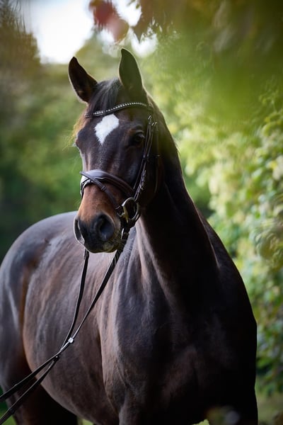 For sale is a very elegant, untouched, and modern-looking mare. She has previously been competed up to class L by an amateur rider. In show jumping, she demonstrates a lot of overview, talent, and willingness to lead. She is suitable as a beginner or amateur horse. She is familiar with cross-country and goes very calmly alone to competitions. She was started late under saddle, as she had a foal at four years old. Afterwards, she was gradually introduced to sport, but due to professional commitments (on my part), she has had several breaks. I am offering her because I no longer have enough time to care for her properly. Her pedigree and lineage also make her interesting for breeding purposes. She will only be sold to a good home with pasture turnout. No dealer inquiries, please!