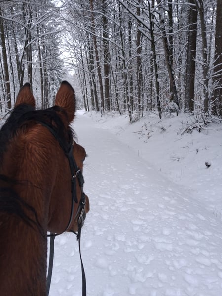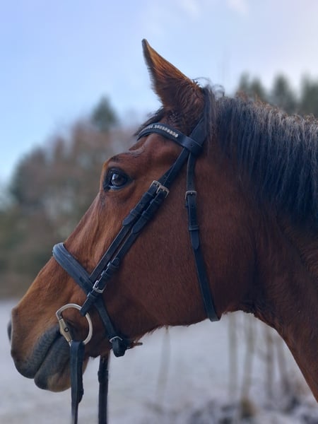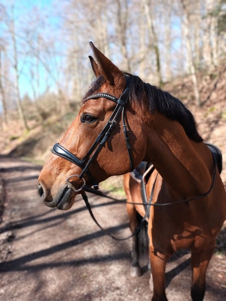 For my confident 9-year-old bay mare, I am looking for a new home. Over the past five years, I have gently and versatilely trained her. In addition to basic dressage and show jumping groundwork, she is familiar with fundamental ground work and enjoys and approaches trail riding in the forest both alone and in company with courage and enthusiasm. She proves to be reliable and brave in these situations, and you can always count on her. She handles unpredictable scenarios such as tractors, joggers, forest workers, and encounters with other riders with composure and confidence. Her dressage training is solid, and she would benefit from a rider who can provide her with varied and stimulating work. In jumping, she needs an ambitious rider who can give her the confidence from above she requires. In daily handling, she is a spirited mare that needs clear boundaries and a consistent, experienced handler. With the right person, she is loyal and eager to work, though she may occasionally test her limits. Socially, she is very friendly and compatible with other horses. She interacts very well and integrates easily. Due to her balanced nature in social contact, I can also very well imagine her in an open stable. Currently, she is kept in a paddock box. This mare is not suitable for beginners or children but is looking for an experienced rider who appreciates her qualities and enjoys working with a horse personality. With proper support, she can be a reliable companion for relaxed rides and versatile leisure riding—ideal for riders who value shared experiences more than competitive ambitions.