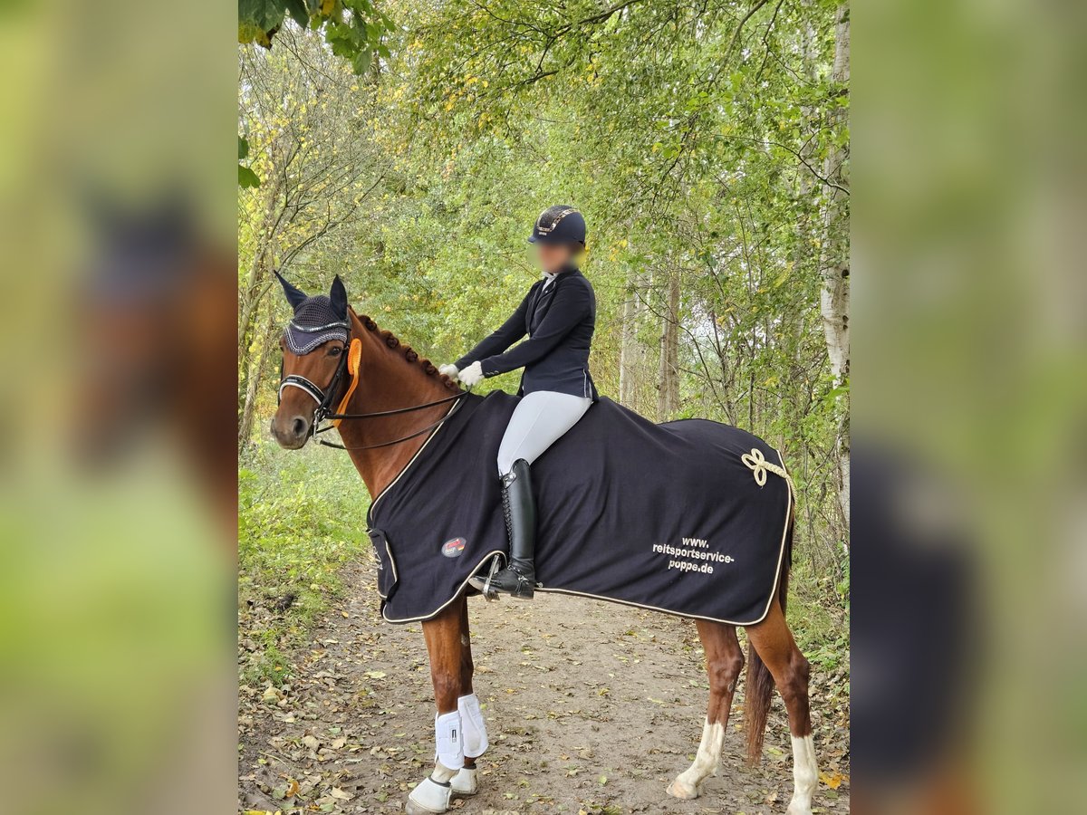 Siegreich in Dressurprüfungen der Klasse M, gehörte diese bewegungsstarke Stute fünf- und sechsjährig trotz weniger Starts zu den zehn erfolgreichsten Pferden ihres Zuchtverbandes. Aktuell wird sie Richtung Klasse S aufgebaut. Sie überzeugt durch hervorragende Rittigkeit, schwungvolle Bewegungen, einen erstklassigen Schritt, hohe Lernbereitschaft und ausgeprägte Nervenstärke. Unter dem Sattel wie auch im täglichen Umgang zeigt sie sich brav und zuverlässig. Damit eignet sie sich perfekt für Junioren mit Kaderambitionen, aber auch für Reiter, die mit einem qualitätsvollen, lerneifrigen und leistungswilligen Pferd einfach Spaß haben wollen. Ihr Vater Escolar war Bundeschampion und beeindruckt durch seine herausragenden sportlichen Leistungen und seine Zuchtleistungen. Er wurde mehrfach in den Olympia-Kader berufen, gewann den Otto-Lörke-Preis als bestes Nachwuchspferd im Grand-Prix-Sport und zählt aktuell zu den führenden Vererbern im Turniersport, mit erfolgreichen Nachkommen, die selbst auf höchstem Niveau starten. Muttervater Quaterback ist eine Dressur-Ikone, Bundeschampion 2006 mit Höchstnoten, S-Dressur-Sieger und einer der weltweit führenden Vererber, bekannt für seine herausragenden Nachkommen sowie für seine Elitehengst-Auszeichnungen und seine Abstammung aus der berühmten P-Familie.