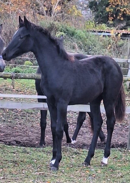 Dieses herausragende Rapp - Stutfohlen errang bei Elite Fohlenchampionat in Groß Viegeln 07/2025, den ERSTEN Platz. Im Typ 9,5 / Exterieur 9,5 / Bewegung 9,5 . Es zählt zu den besten Fohlen seines Jahrgangs! Dieses typvolle Stutfohlen von Mai 2025 begeistert in jeder Hinsicht. Vater : Dream Royal Mutte : Farima -Staatsprämienstute von Fürst Romancier x D'Olympic Dieses Stutfohlen ist dressurbetont gezogen und besitzt drei sehr gute Grundgangarten. Besonders hervorzuheben ist der exzellente Trab: elastisch, raumgreifend, mit kraftvollem Abdruck und stets im Takt. Sie ist korrekt gebaut, bildschön, neugierig und dabei stets freundlich im Umgang. Ein Nachwuchspferd mit Perspektive für Sportund Zucht ! Mit ihrem unkomplizierten Wesen ihrer hochkarätigen Abstammung ist sie das ideale Nachwuchspferd für ambitionierte Amateure wie auch für den Profi-Sport. Kerngesund, aus renommierter Züchterhand mit optimaler Betreuung, korrekt entwurmt, geimpft und dem Schmied vorgestellt. Wir freuen uns über Ihr Interesse und zeigen Ihnen unser Fohlen gern vor Ort! Kontaktieren Sie uns auch per Whats 0172 4020355 Unser Stutfohlen kann ab sofort, in ihr neues Zuhause umziehen.