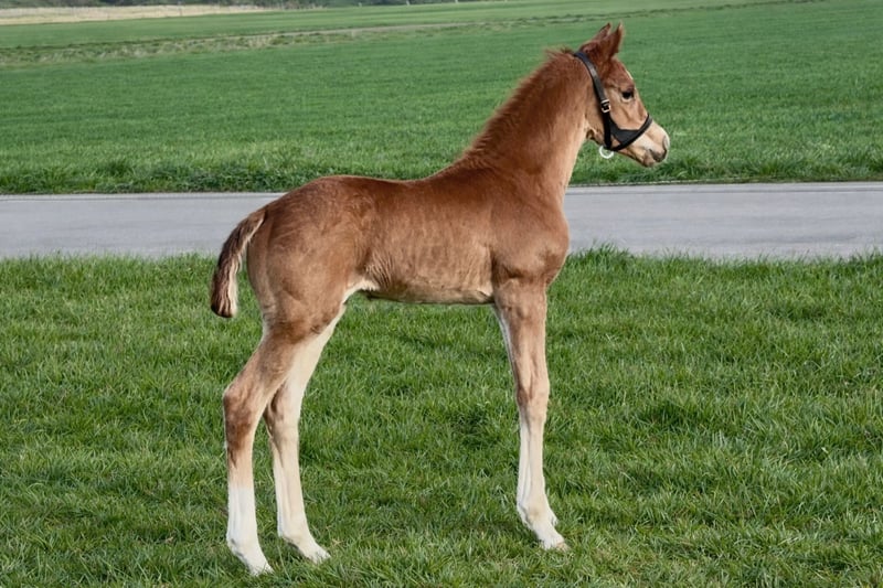 Zum Verkauf steht hier ein wunderschönes, großes Stutfohlen von Seacrest a.d. Pr.St. Gödöllö vom Elitehengst Chardonnay. Es handelt sich hierbei um den Stutenstamm der Gundula, diesem unzählige gekörte Hengste und erfolgreiche Sportpferde entstammen. Vater Seacrest stellte mit seinem ersten Jahrgang bereits den Sieger des Fohlenchampionats in Lienen. Die Mutter dieses tollen Fohlens brachte bereits einen gekörten Hengst und ihr 2024 geborener Sohn ist ebenfalls in Hengstaufzucht mit dem Ziel der Körung. Dieses Stutfohlen überzeugt nicht nur mit seinen drei überragenden GGA, sondern auch mit seinem makellosen Exterieur und einem sehr dem Menschen zugewandten Charakter. Sollte die schöne „Saumur“ ihr Interesse geweckt haben, melden Sie sich gerne bei mir per WhatsApp oder telefonisch. +4915158787345