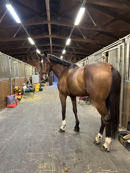 An experienced horse currently jumping courses up to 120 cm. He has nice, light movement and is very well-behaved out on trails. He stands out for his good character and attractive appearance. Easy to handle – well-behaved for clipping and shoeing. Suitable for a recreational rider as well as for someone looking for show jumping horse.