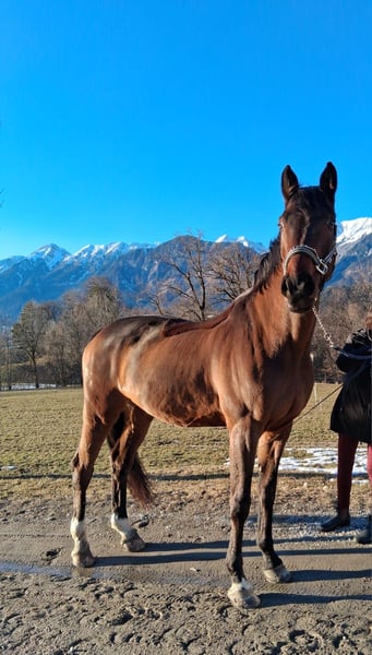 I found Conny in Vorarlberg in November 2025. He immediately captured my heart, but after a short time, I realized that we simply are not the right match. Therefore, I unfortunately have to give this handsome gelding up. Conny is in excellent health; an AKU was performed in November! Conlord Z (Zangerheide) is a very people-oriented horse with a strong character. Conny is not suitable for beginners, so I am only placing him in experienced and empathetic hands. He is also not suitable for riding schools. In the terrain, he has only been ridden in pairs or in groups so far. When ridden indoors, he is very well-behaved. During lunging, he often acts cheeky and tests boundaries. He can also be quite a rascal when being led to the paddock, so he needs a respectful handler. Farrier visits, veterinarian, and loading are no problem for him. He stands patiently at the grooming area. In the past, Conlord competed up to S* level in show jumping, but he no longer has the desire to compete, as he has been pushed quite a bit. However, he still enjoys doing a few small jumps now and then to show what he can do. I am looking for a loving home where Conny will be challenged and cherished with all my heart. He still needs a strong (firm) hand to guide him where to go. Conlord only goes to an open stable, activity yard, or a paddock with daytime turnout and a night box. Purely box-stall housing is not an option! Trial rides are possible at any time. Please contact me directly if you are seriously interested!