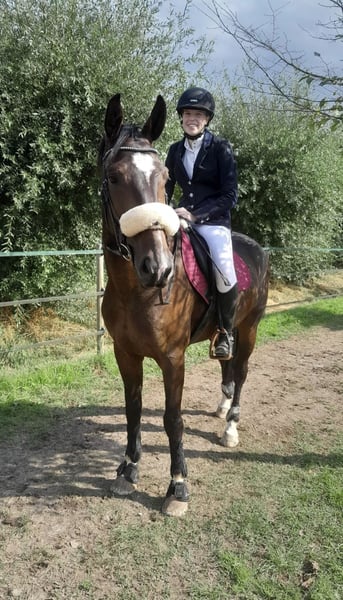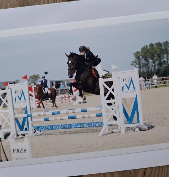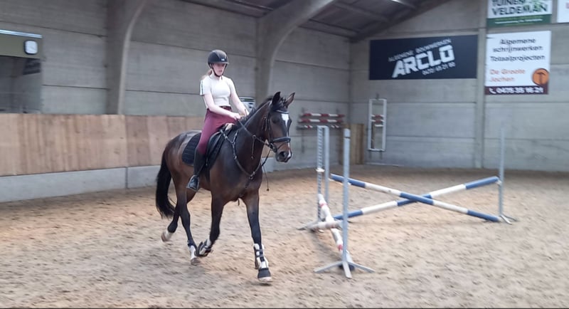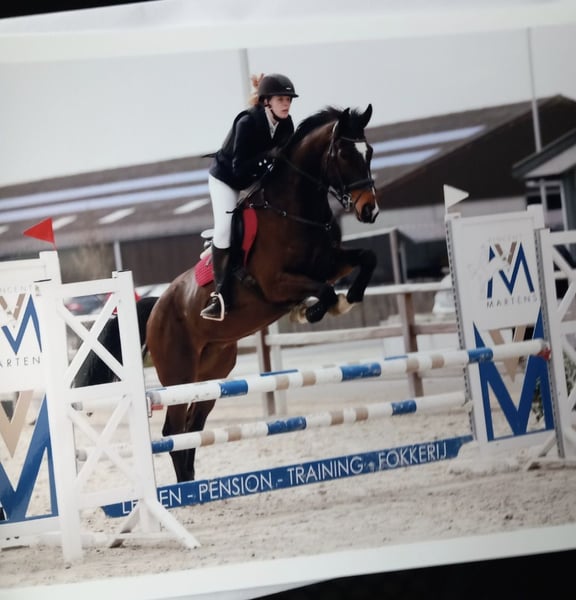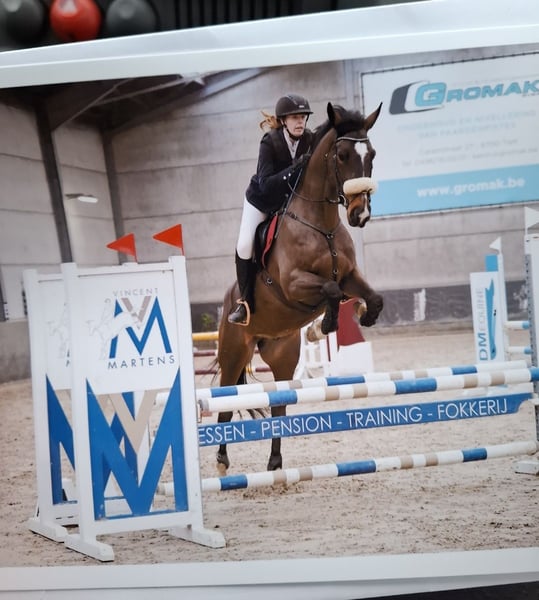 Dit is Allegro. Hij is een 8jarige ruin (12/5/2017). Hij meet 1.70m. Allegro is een heel lief en eerlijk paard in omgang. Hij springt 90/100cm op wedstrijd, maar gaat hoger in training. Hij doet ook eventing op training. Hij heeft heel wat potentieel, maar heeft een goede ruiter nodig die het eruit kan/ wil krijgen. Hij heeft 3 mooie/correcte gangen/wijken/ eenvoudige wissels en kan met fijn contact, aanleuning lopen met de juiste ruiter. Voor mij is hij jammer genoeg te sterk geworden. Allegro heeft wel een ervaren ruiter nodig die hem durft door te rijden, door zijn frisheid en sterkheid in de winter. Hij is flink voor op de camion, voor de hoefsmid, dierenarts, scheren, ... Heel sociaal, heeft echt wel een wei nodig en kan met andere paarden samen staan. Gaat alleen weg naar 5⭐ huisje. Geen handelaren of maneges. Voor meer info graag pb.
