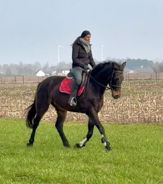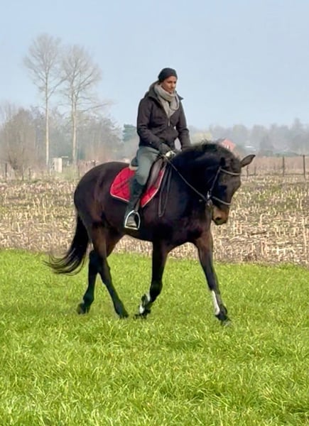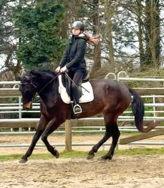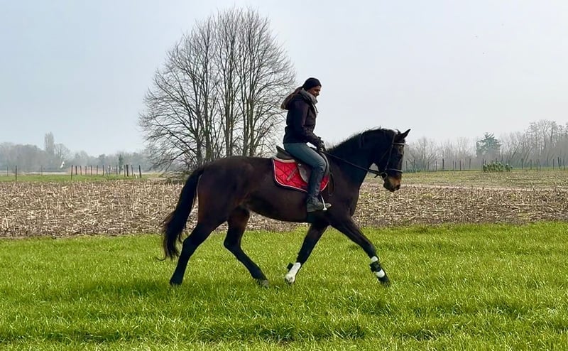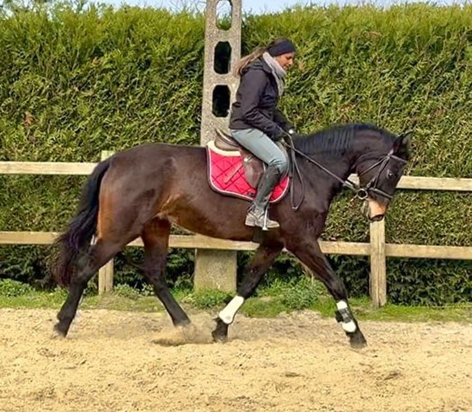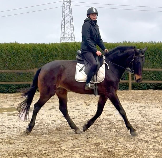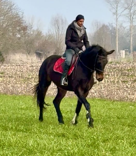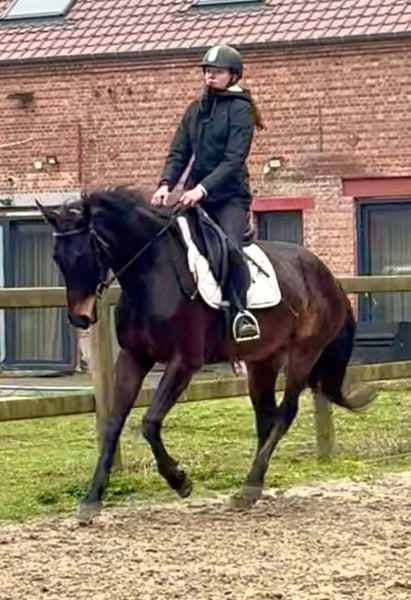 Tof leerpaardje! Top geschoolde 13j merrie Meet ongeveer 160cm V: Adjan - Tuschiniski - Krack C Vm: Ungaro Kent oefeningen M - niveau. Netjes en fijn te rijden. Niet sterk. Kent haar werk. Fijn aan de hulpen. Zacht te rijden. Paardje die wil werken en ook weet wat ze moet doen. Eerder wat trager te rijden. Ook braaf op wandeling, rustig. Ook verkeersmak. Loopt lessen mee wordt gereden door jonge ruiters -13j In omgang staat ze niet zo graag stil, nieuwe omgeving, krijgt alle tijd om te wennen. Voorheen 1/2 jaar stilgestaan omdat ze veulen heeft gehad. Wordt rustig terug gewerkt. Reden vk: Enkel veulen gehouden. Staat hier 24/7 buiten in de kudde voorheen op stal. 0032496619693 Bornem Belgie