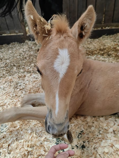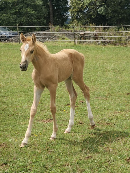 Hier gibt es nicht nur eine wunderschöne Palominofarbe, sondern auch beste Genetik. Elsa präsentiert sich als sehr korrektes und mutiges Fohlen mit viel Kraft in der Hinterhand und einem harmonischen Exterieur. Sie hat viel Energie, ist aber sehr umgänglich. Lässt sich brav halftern und führen, gibt Hufe und lässt sich überall anfassen, einsprühen, etc. Ideales Sportpferd für einen ambitionierten und versierten Reiter/Reiterin in der Vielseitigkeit oder im Springsport. Endmaß sollte bei ca. 1,66m liegen. In Premium-Aufzucht mit hochwertigem Futter, regelmäßigem Schmied und täglichem Weidegang seit Geburt. Kann dort auch verbleiben, falls ein Aufzuchtplatz benötigt wird. Nur aufgrund persönlicher Umstände abzugeben. Platz vor Preis, sportliche Förderung steht im Vordergrund. Bei entsprechenden Referenzen bin ich bereit entgegenzukommen. ------------------------------------------------------------------------------------------------------------------ Bereit für einen Exkurs in ein Leistungspedigree? Der Vater Vanilla Ice de Tamise, ein goldgelber Palomino, ist ein Junghengst und Neuzugang im berühmten belgische Gestüt Stal de Muze. Er wurde letzten Winter schonend angeritten, hat die Belgian Stallion Competition (Springen) absolviert und wird nun für eine Karriere als Vielseitigkeitspferd vorbereitet. Vanilla Ice ist charakterlich einwandfrei und extrem rittig. In seinem Pedigree finden sich nicht nur Stars aus dem S-Springparcours wie Kasanova de la Pomme, Bamako de Muze und Darco, sowie der selbst bis 1,40m erfolgreiche Falbe Cream on Top, sondern auch mütterlicherseits echte Highlights. Mutter Lagune van't Verahof lieferte neben Popeye de Tamise (1,50m) auch bereits Olympic de Muze (4* Karin Donckers) und Ragdoll de Tamise (3* Wouter de Cleene). Großmutter Southern Queen xx ist vor allem bekannt für Ihre Nachkommen Fletcha Van't Verahof (4* Legende von Karin Donckers), Heras van't Verahof (1,60m) und Leipheimer van't Verahof (4*, gekört und Olympiapferd von Karin Donckers). Genetisch und auch im echten Leben ein Hengst der begeistert. Die Mutter von Elsa ist im Hannoveraner Hauptstutbuch eingetragen inkl. Freispringen. Sie verfügt über raumgreifende Grundgangarten, fantastische Rittigkeit und eine sehr saubere Springtechnik (Technik 8,0). Durch einen Anhängerunfall mit Teilabriss des Nackenbandes ist sie leider nicht im Sport gelaufen. Muttervater Viscount gilt als sicherer Doppelvererber. Er ist väterlicherseits ein Halbbruder zu Nadine Marzahls viel zu früh verstorbener Valentine. Er selbst hat Nachkommen in allen Disziplinen bis Klasse S. In der VS u.a. Viscount Victor (5* Tim Price), Venezuela (4* Emily Grace), Very Special (4* Brandon Schäfer-Gehrdau), Vidalgo (3* Kevin McNab), Viscina (3* Felix Vogg), Valetta (3* Jörn Warner), und viele mehr. Die Großmutter war nach einem späten Einstieg selbst im Sport unterwegs (mangels passendem Reiter nur bis 1,30m). Sie ist eine der letzten noch lebenden und in Deutschland verbliebenen direkten Mytens xx Stuten und erfreut sich mit 23 bester Gesundheit. Mytens xx gilt als eine Legende der Vollblüter in der Warmblutzucht. Er selbst ist ein Sohn eines Weltrekordpferdes und wurde als Jährling für 995.000 USD nach England verkauft, gewann dort Rennen und wechselte dann in den Springsport, wo er bis in die schwere Klasse erfolgreich war. Mytens lieferte Sportpferde für alle Disziplinen, u.a. die Derby-Sieger Watermill Fourth xx und Watermill Seven xx, viele S-Springpferde wie Hamar (gek. USA), Haydn (gek. SWE), Helibantos, Hytens (gek.), Mullins (Tjark Nagel), Joint Venture (JAP) und viele mehr, sowie in der Vielseitigkeit My Win (gek., 4* Lazlo Egyed HUN), Mighty Magic (gek., 3* Andreas Dibowski), Irco B/Igeret (gek. 3* Bor Schaller HUN) und weitere. Hier findet sich außerdem der Doppelvererber Gambler's Cup xx eingesetzt auf dem ostpreußischen Stutenstamm (O184 A Hoffmann Motitten). Der Stamm ist ein kleines Juwel, neben der Hannoveraner Stute des Jahres 2009 brachte er zudem einige gekörte Hengste, sowie etliche sporterfolgreiche Pferde. Dazu zählen u.a. die S-Springpferde Lantinus Z (Olympiade Springen), Winnie H (Vollschwester zu Wilthy H), Sissi, Ciky Caloa, Salamander, etc. Sowie die S-Dressurpferde Primadonna, Wilwaukee, Al Pacino, etc. Eine Kombination aus dem eisenharten Blut der Ostpreußen, mit der Vielseitigkeit der der alten Hannoveranerlinien und eine guten Portion sportgeprüften Vollblütern.