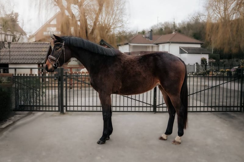 Mare, 2022 Pedigree: Helium × Gribaldi Height: 1.68 m Color: Bay Breed: Sport Horse Training level: Basic Competition level: Not competed yet Amateur friendly: Yes Very easy and pleasant young mare with an exceptionally good mind. She was broken in only four weeks ago but already feels very confident and routine under the rider. Soft and light in the hand, cooperative and willing to work. She has already been to another stable for training and behaved completely relaxed and focused, feeling at home straight away. A lovely, straightforward young horse with a great attitude and future potential. Country: Germany