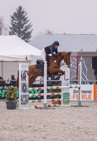 6-jährige Stute mit Vermögen und Vielseitigkeit zu verkaufen Zum Verkauf steht eine talentierte, 6-jährige Stute mit einem Stockmaß von ca. 1,62 m. Abstammung: Diamant de Semilly x Landgraf I. Die Stute überzeugt durch ihre Arbeitsfreude und ihr ausgeglichenes Wesen. Sie ist bereits erfolgreich auf Turnieren bis Springpferde A** platziert und zeigt dabei viel Vermögen sowie eine sehr gute Einstellung zum Sport. Auch im Gelände ist sie einsetzbar: Sie geht allein und brav in der Gruppe ins Gelände und springt souverän Geländehindernisse – somit ist sie auch hochinteressant für die Vielseitigkeit. Weitere Eigenschaften: • herdentauglich • barhuf (kennt auch Eisen) • regelmäßig geimpft • Physiotherapie sowie Zahnkontrollen wurden immer durchgeführt • Brav mit Hunden • Brav im Umgang mit Kindern Eine vielseitige, unkomplizierte Stute mit Potenzial für Sport und Freizeit. Preis: 19.500 € VB Tüv: kann gerne gemacht werden! Bei Interesse gerne melden!