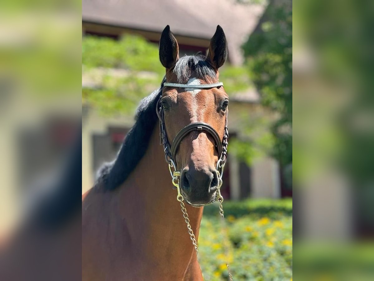 SAFFIRA VAN'T GOOVAHOF, an Anglo-European sport mare, born on 07/11/2018. She is a bay, standing at 16.1 hh. Of good pedigree: DIARADO and JOKIRA VAN'T GOOVAHOF by OGANO SITTE. Ready for show jumping at 120-125 cm, she has competed up to 130 cm. Saffira is a stunning mare with a very calm temperament. At the jumps, she is fearless and never refuses. She loads and travels very well. Her vaccinations, deworming, dental care, and osteopathic treatments are all up to date. Complete radiological examinations are available from 2024. Currently, Saffira is in training and can be seen with professional riders at MV JUMP.