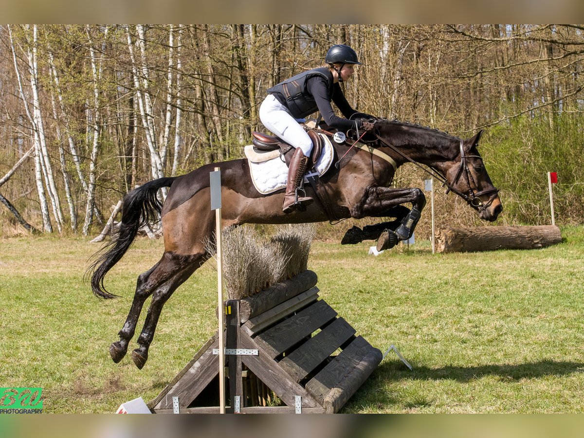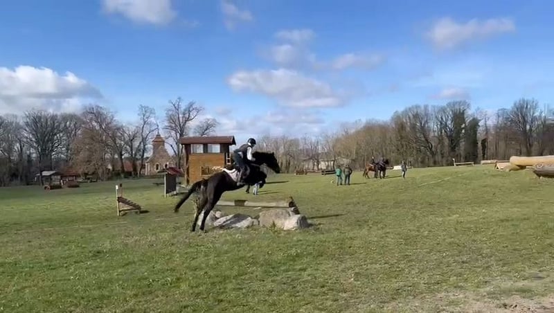 For sale is a 10-year-old gelding, CDE, with a dark chestnut coat, approximately 16.1 hh. Sire: Q’orrado d’Argent (French jumping lineage, grandsire Verdi). On the dam’s side, he comes from a Hannoverian line with dressage influence. Full pedigree available. This horse is very reliable in jumping: he always clears everything, regardless of rider, and has never refused a fence. He has good movement and is very easy to work with in dressage. He performs leg-yields, shoulder-in, and haunches-in; lateral work is initiated and clear. Simple changes are confirmed, and leg-yields are started. In dressage, he has not been shown frequently and needs some time at the start of the season to loosen up in the arena, but improves quickly with work and outings. In jumping, he adapts to any surface: grass, sand, indoor or outdoor arenas, with no issues over obstacles, colors, or decorations. As a eventing horse, he jumps best with a steady rhythm and a bit more impulsion; it’s a small challenge for the rider to avoid going too fast or too collected. Overall, he is an easy jumper. The more freedom you give him, the better the results. His greatest strength is cross-country (XC): he jumps confidently and is familiar with all common obstacles (ditches, up and downhills, skinnies, etc.). He is a very safe and trustworthy horse. He has competed at **A-level** in Germany only a couple of times, but we trained many more times with increased difficulty and height, which he handles without any problem. He enjoys work on the ground and in free movement. He knows exercises like the Spanish walk, Spanish step, turns, and has begun work towards piaffe. He goes alone or in groups to the field, travels easily in trailer and truck, and behaves properly with farrier and veterinarian. He has very good hooves; in Germany, he worked over jumps up to 1.15 m and cross-country training without shoes. I bought him directly from his breeders, where I also worked. He has enough experience for his age, making him ideal for someone looking for a safe horse to continue progressing or learn with. At the same time, he is not “worn out” and is fully healthy. He spent 2 years in Germany, where, due to health reasons, he could not be shown frequently, but he participated in training sessions and clinics outside the home. He is being sold due to abandonment of riding. I am looking for a five-star home; otherwise, he will return with me to Germany. Currently, he has had limited work since the end of last year, having been ridden only occasionally. He always behaves impeccably but is not in full training condition at the moment. The home is more important than the price, but he is a true all-rounder and a guarantee in any situation. He is perfect for some fitness work and enjoying rides. Price negotiable: €15,000