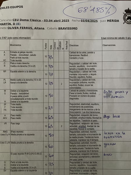 Es wird ein neues Zuhause für diesen hervorragenden Mitteleuropäer gesucht (im Zuchtbuch ANCADES als CDE eingetragen), Sohn von Bellisimo M. Er konkurriert auf autonomen und nationalen Niveau in der Klasse 1 und 2 (Niveau 4). Derzeit führt er Übungen auf San Jorge-Niveau durch. Ein Pferd mit großem Talent. Perspektive als Grand Prix-Pferd. Ein Warmblutpferd mit ausgezeichnetem Charakter sowohl im Stall, bei der Bodenarbeit, im Transport als auch im Wettkampf.