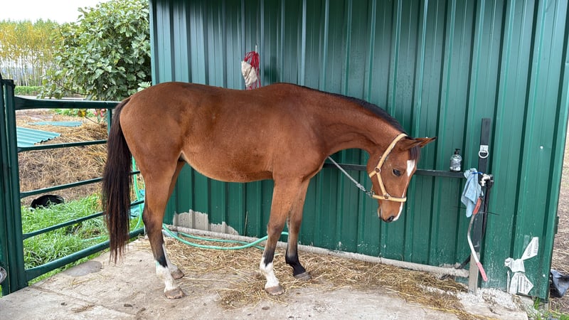 Castrado, castaño, muy tocado y muy buen carácter. La madre ha corrido hasta 1,35, Muy amateur. Padre ha corrido hasta 1,30 con 6 años.